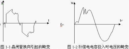 1)晶体管换流设备对变频器的干扰:当供电网络内有容量较大的晶闸管换流设备时,由于晶闸管总是在每相半周期内的部分时间导通,容易使网络电压出现凹凸(如图1-1所示)。它使变频器输入侧的整流电路有可能因此出现较大的反向回复电压而受到损害。