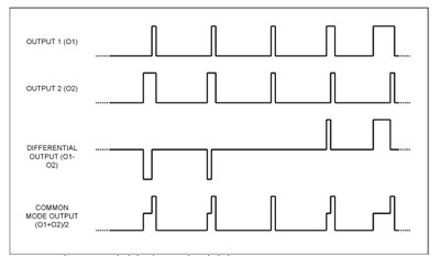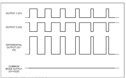 如图1所示,如果器件的反相和同相输出回路具有较高的匹配度,则两个对称输出信号波形在扬声器或连线上将具有很小的共模(CM)信号(底部的迹线)。注意:50%占空比代表零输入信号(空闲状态)。因此,可以设计一个差分低通滤波器,用于衰减信号波形中高频分量(快速切换所产生的),同时保留有用的低频分量以输出到扬声器。