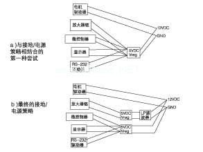 图6电源和接地的第一种和第二种策略。注意,第二种要尽可能地将噪声与敏感电路分开。