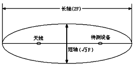 10kHz~1000MHz频段的辐射测试场地应该是一个空旷、平坦的场地,在其边界范围内无架空线,附近无反射结构物(如钢筋水泥建筑和高大树木等),而且具有足够大的尺寸,使天线、试品和反射结构物之间能充分分开。满足标准的辐射测试场地应该是一个由长轴等于两倍焦距(F)、短轴等于倍焦距的椭圆所包围的场地,如图1所示。试验时,EUT和测量天线将分别处在两个焦点上。