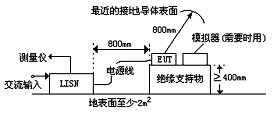 在辐射试验场上测量时,EUT应处于和辐射测量相同的状态下,且EUT应处在比其边界至少扩展O.5m或最小尺寸为2m×2m的金属接地平板上。