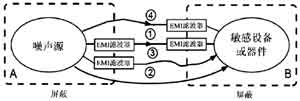 如图3所示是对所有可能噪声干扰路径的噪声抑制的方法。这就分成两种方法,一种是EMI滤波器,一种是屏蔽。屏蔽更多是涉及到机壳整体的机械结构设计,往往对系统的布局布置有更多考虑。从电路设计的角度,我们更多的是要考虑EMI滤波器。因为更为广泛的干扰都是从线路上溢出或是从线路上的耦合中产生的,因此在线路上的滤波对辐射的抑制效果更明显一点。