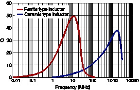 Q值因频率和基材不同而变化。铁氧体基材不可用于几百MHz以上的频率范围,应采用陶瓷介质。