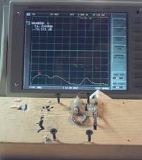 如图2所示,不论是选择加工还是购买环天线,两个环天线都必须被小心地放置在相互垂直的位置上,以便获得两天线之间的最小耦合;而用于支撑测试装置的平台则可以简单的用木头和塑料来实现。如前所述,测试装置中的一个探头会被连接到RF扫频源,而另一个探头则会被连接到扫频接收机上。如果测试试验室内装备有矢量网络分析仪,那么只要其RF信号源和接收端口之间的隔离度大于70dB,则综合了频谱分析仪功能和扫频信号源功能的网络分析仪就能很好的完成本项测试任务。另外,测试过程中环天线必须被固定在介质材料上,例如木头和塑料。基本的测试装置并不复杂,通过在木块上插入螺丝钉就可以得到一个如图2所示的简单的测试装置。