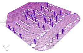 随着当今集成电路对供电稳定性的要求,印制板设计工程师需要关注于低电压、低翻转门限与大电流、多层长线供电所造成的压降。利用CST电磁工作室的稳恒电流求解器可以仿真整个PCB的电压分布,如图15所示: