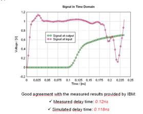 除了CST印制板工作室,CST微波工作室也可以进行印制板的信号完整性分析。CST微波工作室是通用的高频无源仿真软件,集时域和频域算法为一体包含七种全波算法:时域有限积分、频域有限积分、频域有限元、模式降阶法、矩量法、多层快速多极子和本征模法。图5给出了CST仿真IBM复杂PCB并进行信号完整性分析的考题,仿真得到的电压延时与实测只差0.002ns。[page]