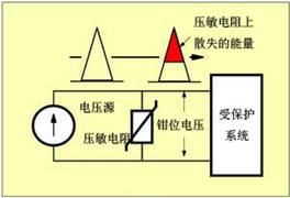 当应用于滤波器时,压敏电阻提供了额外的瞬态保护功能。它将暂态电压脉中所载的能量消耗成热(图5)。高导电氧化锌颗粒作为散热器可确保整个器件中迅速和均匀地散热,并尽量减少温度上升(但是压敏电阻只可以消耗少量的平均功率,不适合应用在连续功率消耗上)。