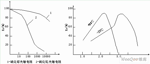 图5 光敏电阻的频率特性 图6 硫化铅的光谱温度特性