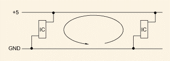 电流通过感应进入到电路环路,这些环路是封闭的,并具有变化的磁通量。电流的幅度与环的面积成正比。较大的环路包含有较多的磁通量,因而在电路中感应出较强的电流。因此,必须减少环路面积。