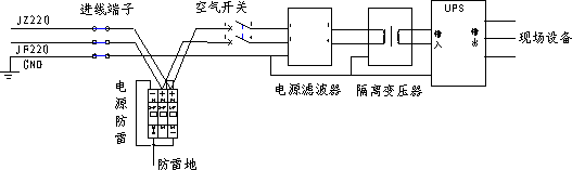 电源防雷主要是针对系统级而言的,系统级设计要按照三级防雷设计,总电源进入端设置电源防雷(如OBO公司的V20-C/3-PH 385),可以对系统的电源进行一级防护,电源经过电源防雷后,进入隔离变压器,隔离变压器可以对电磁干扰信号进行较好的防护,抑制其对系统的影响。后进入UPS,UPS可以滤除一部分干扰信号,这样电源再进入系统设备,电源是一种纯净的电源,可以使系统更好、更可靠的工作。