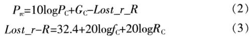 设发射系统的发射功率为Pc,单位为W;发射天线增益为Gc,单位为dB;发射距离为Rc,单位为km;信号传输损耗为Lost_r_R,单位为dB;信号频率为fc,单位为MHz。发射信号到达接收系统的功率为: