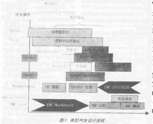 以往的电子电路设计,工程师们多是凭借多年的开发经验在PCB制成后,在硬件调试或电子设备的整机调试过程中解决EMC的问题,这显然是一种定性不定量的、不可靠、不精确的方法。进入90年代以来,电子产品向着低功耗、低电磁辐射,小型化和轻型化的方向发展,而且要求能在复杂恶劣的环境中工作,为了尽量缩短产品的开发周期,工程师们不得不另辟新径。更理想的PCB设计流程如图1所示,在PCB设计的布局和布线阶段加入EMC/EMI的准则。例如为了减少并行信号走线间的相互串扰,可以为为规定线线之间的距离不能小于一定的值。为了减少信号的反射,使输入输出阻抗匹配,避免出现振铃现象,可以规定布线网络的几何拓扑结构,走线的长度,甚至于在信号的驱动端事输出端端接阻容器件(常用的方法有串接电阻,并接上拉、下拉或上下接电阻,也可采用箝位二极管等方法)。在PCB布局布线结束后,在制作实际电路板之前对电路设计进行EMC/EMI的分析和模拟仿真。同时依据实际电路的动态工作频率分析信号的强度、时延等特性。如果设计的PCB中含有与外部的接口,IC上外加了散热器或电路本身功耗大时,必须进一步进行电磁辐射的模拟仿真分析。对于高速电路有必要进行布线网络的TALC传输线分布参数分析。新加入的这些设计阶段的步骤,实际上是把以前硬件调试的一些工作提前到计算机的设计平台上来完成,其优越性是显而易见的。因为有IBIS和SPICE等数据库的支持,以往EMC/EMI不定量的捉摸不定的分析变为精确的与实测差别细微的计算结果,设计者根据模拟仿真的结果可以避免产品电磁兼容性差的弊病。