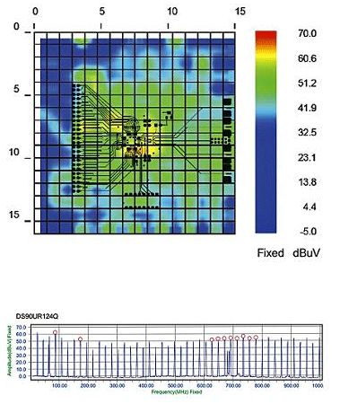 快速磁性极近场测量仪器可以捕获和显示频谱和实时空间扫描结果的可视图像。芯片厂商和PCB设计工程师可以扫描任何一块电路板,并识别出50kHz至4GHz频率范围内的恒定或时基的辐射源。这种扫描技术有助于快速解决广泛的电磁设计问题,包括滤波、屏蔽、共模、电流分布、抗干扰性和宽带噪声。