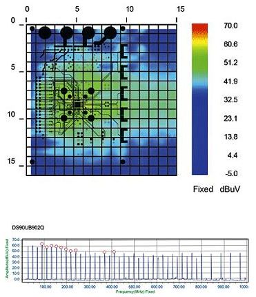 在任何新PCB的开发过程中,设计工程师都必须找出设计之外的辐射体或射频泄漏,并对其进行描述和处理以通过一致性测试??赡艿姆涮灏ǜ咚?、大功率器件以及具有高密度或高复杂度的器件。扫描系统以叠加在Gerber文件上的形式显示空间辐射特性,因此测试人员可以准确地找出所有辐射问题的来源。设计工程师可以在采取了相应的解决措施之后,对器件进行重新测试并立即量化出校正设计后的效果。