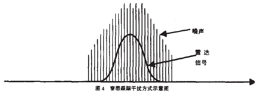 宽带干扰方式又称为全波段干扰方式,它常用来覆盖雷达的整个调谐频带,它用来同时干扰所有处于这个频段内的雷达或干扰使用频率捷变或高分辨波形的雷达。它又可以分为三种工作方式:宽带噪声干扰、噪声闪烁于扰和扫频干扰。