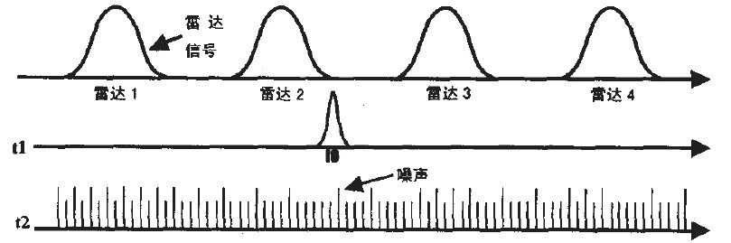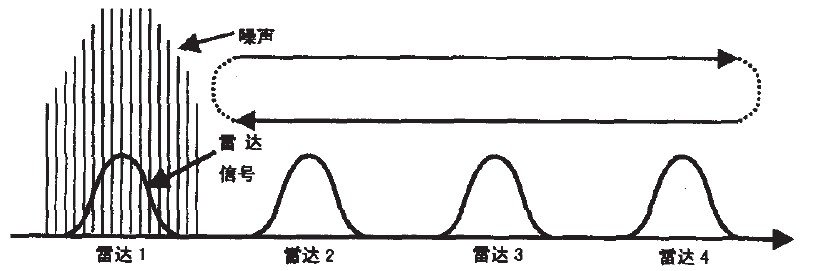 扫频干扰方式主要在雷达的整个调谐频带内重复进行点干扰,虽然此方式不能比宽带噪声干扰给出更多的平均功率,但是扫频干扰使每个雷达周期性地承担最大可能的功率。事实证明,通过调整扫描频率以保持雷达通带内的干扰时间约等于雷达发射脉冲宽度,扫频干扰方式在产生假目标方面是最有效的。并且对于扫描雷达,扫频干扰可产生足够可信赖的假目标。其工作方式如图3所示。