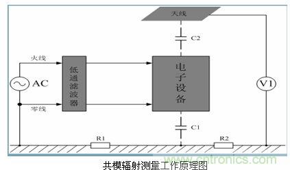 其中C1、C2为分布电容,V1为频谱仪或其它仪表。