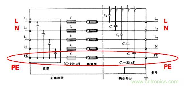 同样,试品如通过三芯电源进线(单相,一根L,一根N,及一根电气接地线),而未设专门接地线时,则此试品也不允许另外再设接地线来接地,而且按标准要求,试品的这根电气接地线还必须经受抗扰度试验。