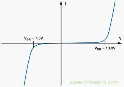 重要的是要确保TVS的击穿电压在受?;ひ诺恼9ぷ鞣段е?。CDSOT23-SM712的独有特性是具有+13.3 V和–7.5 V的非对称击穿电压,与+12 V至–7 V的收发器共模范围相匹配,从而提供最佳?;?,同时最大程度减小对ADM3485E RS-485收发器的过压应力。
