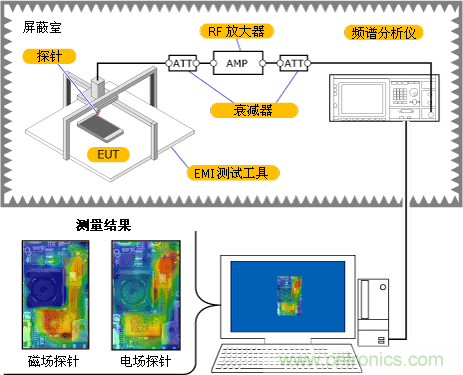 通过测量相邻电磁场的分布,检查噪声源和噪声传播机制。