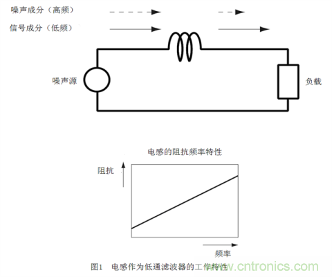 因此,如果将电感串联插入噪声通道,频率较低的信号成分将容易通过,频率较高的噪声成分将不易通过。