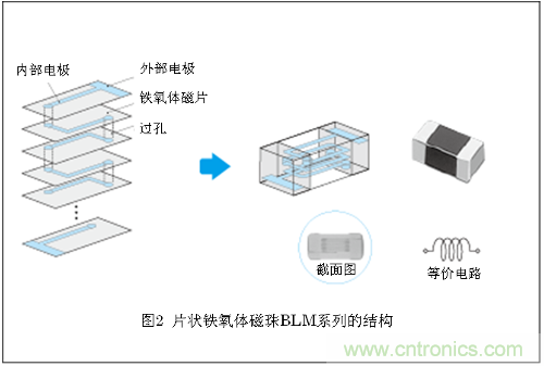 片状铁氧体磁珠通过叠层而形成了电感器的构造
