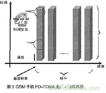 GSM(全球通)手机标准使用频分多路传输和时分多路传输,同时传送大量电话,如图3所示。