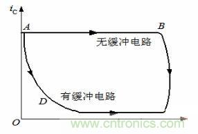 如图所示增加吸收电路后开关管上的电流、电压波形与没有吸收回路时的波形比较。