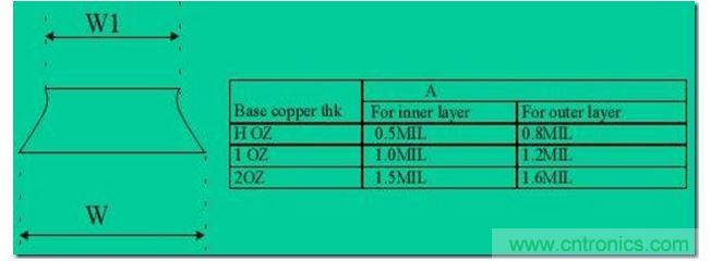 走线厚度T与该层的铜厚有对应关系,具体如下: