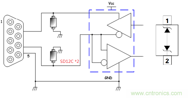 以下方案已经过合资厂验证,满足汽车级的静电要求和浪涌保护。