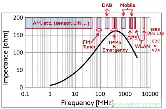 这个频带包括,一直以来使用的AM无线频带150kHz和搭载多个GHz频带无线的汽车音响娱乐设备的6GHz频带。