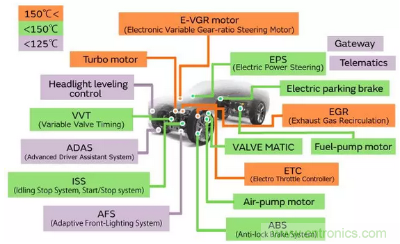随着汽车的轻量化、小型化,在引擎箱附近以及容易发热的地方,越发需要能够保证超过125℃的耐高温元件。