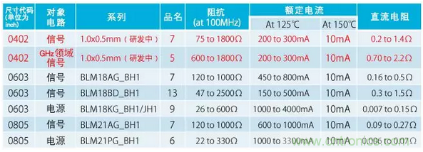 适合0603 inch (1608 mm)尺寸/低频~宽带域的静噪对策