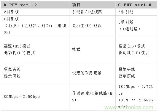 D-PHY之后还制定出了M-PHY规格,C-PHY介于D-PHY和M-PHY之间成了标准规格。
