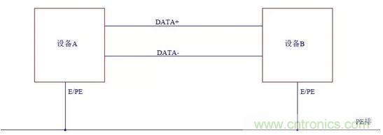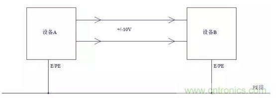 如下图所示,如果两个设备的零电位没有很好的连接,即使设备A输出的电压信号是稳定的,当设备B的输入端接收到时也会变为不稳定的。