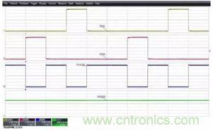 下图3显示的是关闭模板后示波器采集到的数据信号,每个信号的波形形状可以被清晰的显示和观察。示波器基于通道2的边沿触发,所有4个波形同时被捕获。