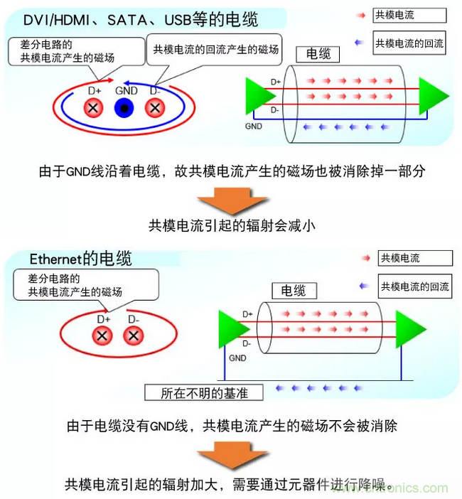 Ethernet等差分信号传输中因各种原因共模电流会产生噪声。