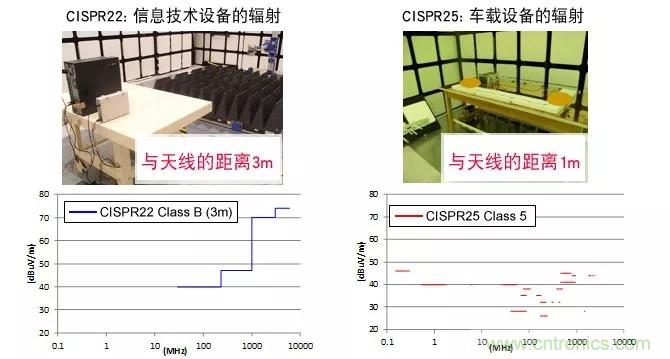 与民用产品相比,车载设备与天线的距离较短且具有更加严格的限度值。