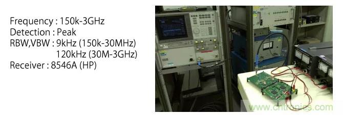 通过辐射噪声测定确认了共模扼流圈的降噪效果。