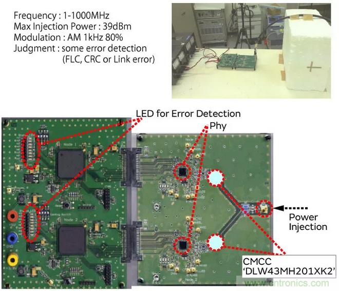 进行DPI(Direct Power Injection)试验,确认了共模扼流圈的抗扰性改善效果。