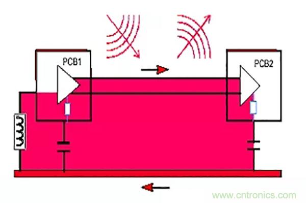 -在干扰源与干扰对称之间存在着互感而产生,干扰量是变化的磁场,即变化的电流di/dt。