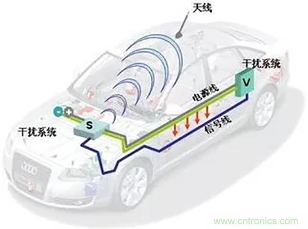 敏感设备,受干扰的电路或设备。高压系统,每一个依靠波形控制的高压电器,如果受到电磁干扰,可能输出错误的控制信号。低压系统,比如整车控制器VCU、CAN通讯系统、电池管理系统BMS(尤其开关触发电路和传感器),能量管理单元,制动控制器等等,几乎每一个具备控制调节功能的电气都是敏感源。