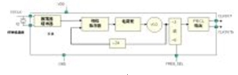与晶体振荡器相比,PLL合成器是一种更为复杂的系统时钟源。其中,单从PLL来讲,它通常由相频检测器(PFD)、电荷泵、低通滤波器 (LPF)和压控振荡器(VCO)等组成。而通用的PLL合成器时钟产生器一般需要外部晶体以及放大反向器,并再通过完全集成的PLL和逻辑电路来完成。PLL合成器还可以实现其它更高的功能和特性,如晶体频率倍频、输出相位校准、多个输出副本和对输出进行分频等。图3显示 的是典型PLL合成器的结构示意图。