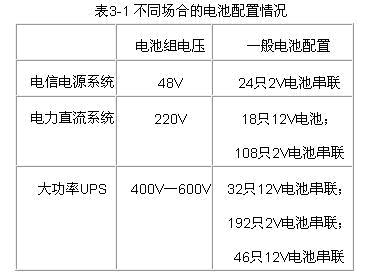 电池组是由多个单电池串联构成的,一般的配置情况如表3-1所示。