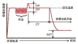焊嘴(例:接触到有水的海绵)有温度变化,可自动解除休眠功能。(在休眠功能的温度(SST)的温度下降到100℃以下的时候,此方法不能解除休眠功能。)