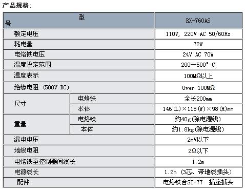 新开发的长寿焊嘴发热芯一体型焊嘴,适用于大热容量无铅焊锡。RX-760AS能在 200-500℃大范围进行温度设定,数字显示设定温度,温度设定简单、精确。采用新设计的焊嘴发热芯一体型焊嘴,大热负荷时,快速升温。亦可在较低温度下作业,减少对小型电子元件的热冲击。焊嘴部装有温度传感器,精确测定焊嘴温度。