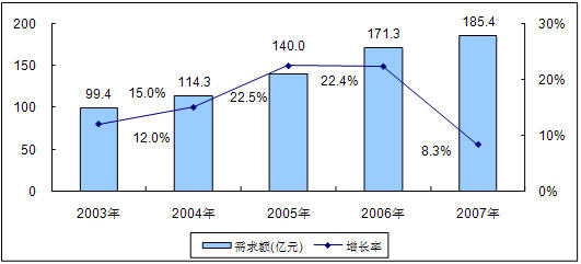 图1 2004-2008年中国LED市场需求额