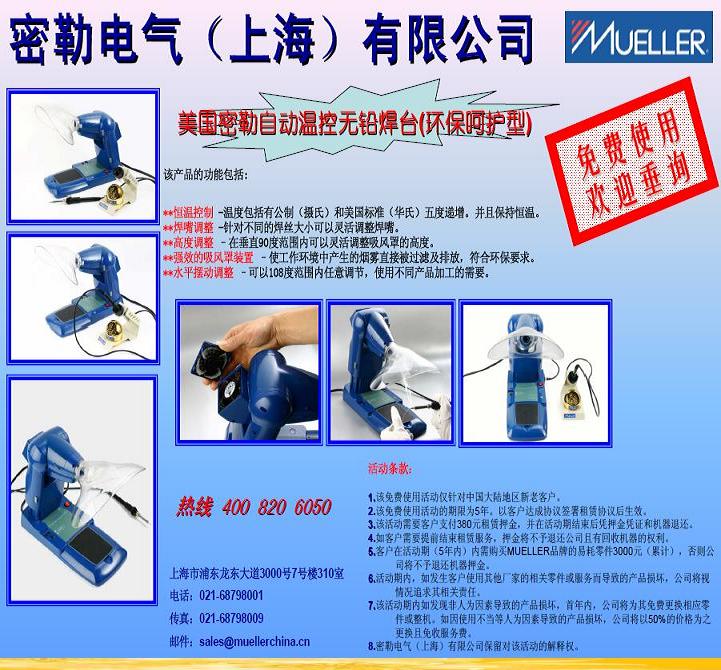 Mueller自动温控无铅焊台免费使用活动条款: