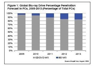 - 预计2013年,当年出货的PC中将仅有16.3%装备BD,高于2009年时的3.6%