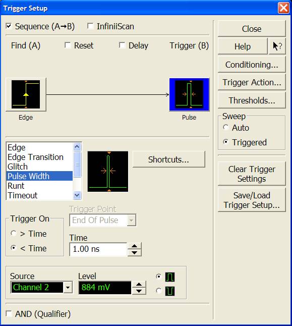 有关脉宽触发的另一个令人费解的地方是它们并不全是违反触发。虽然毛刺信号很明显是违反触发,但长脉冲也可能是一个正常事件。因此,这取决于是否规定了脉冲宽度为违反触发的一个条件。